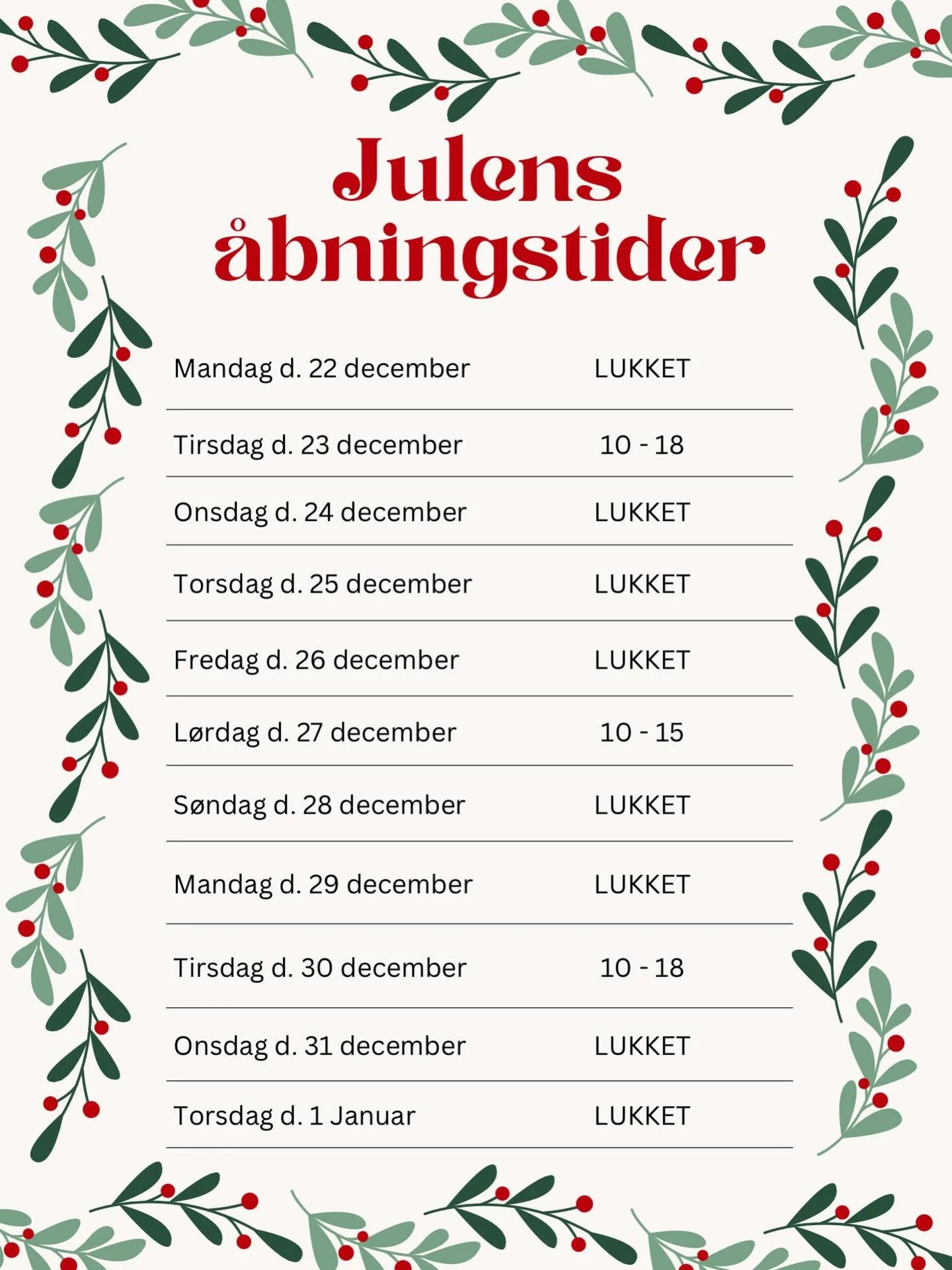 Vi ønsker alle en glædelig jul og et godt nytår og husk vi også har lukket 31/12